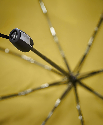 Its aerodynamic canopy resists wind up to 80 km/h, while the short, lightweight frame slips easily into a bag or jacket pocket. A smart travel companion for the city: minimal, reliable, and made to handle unpredictable west-coast weather.